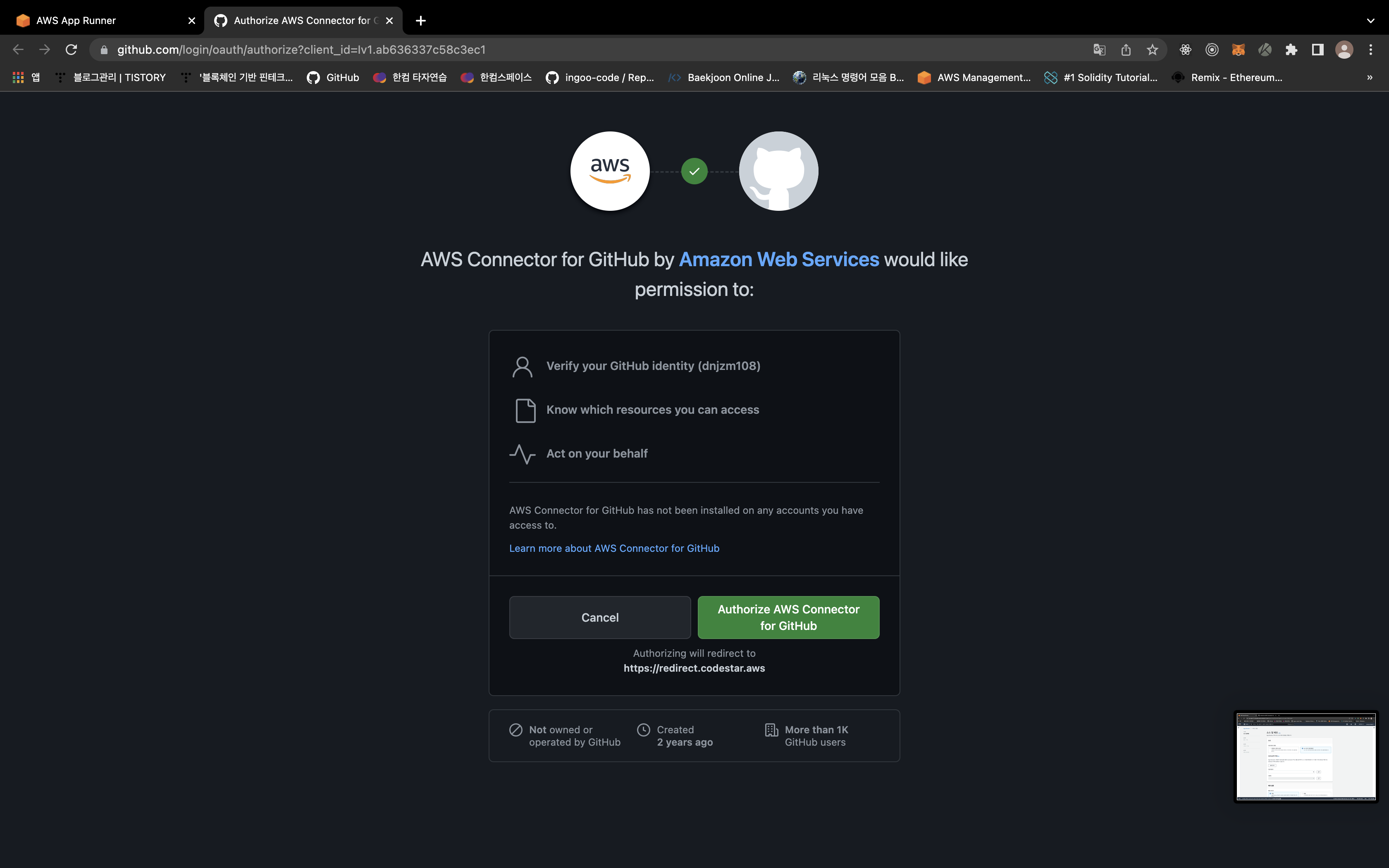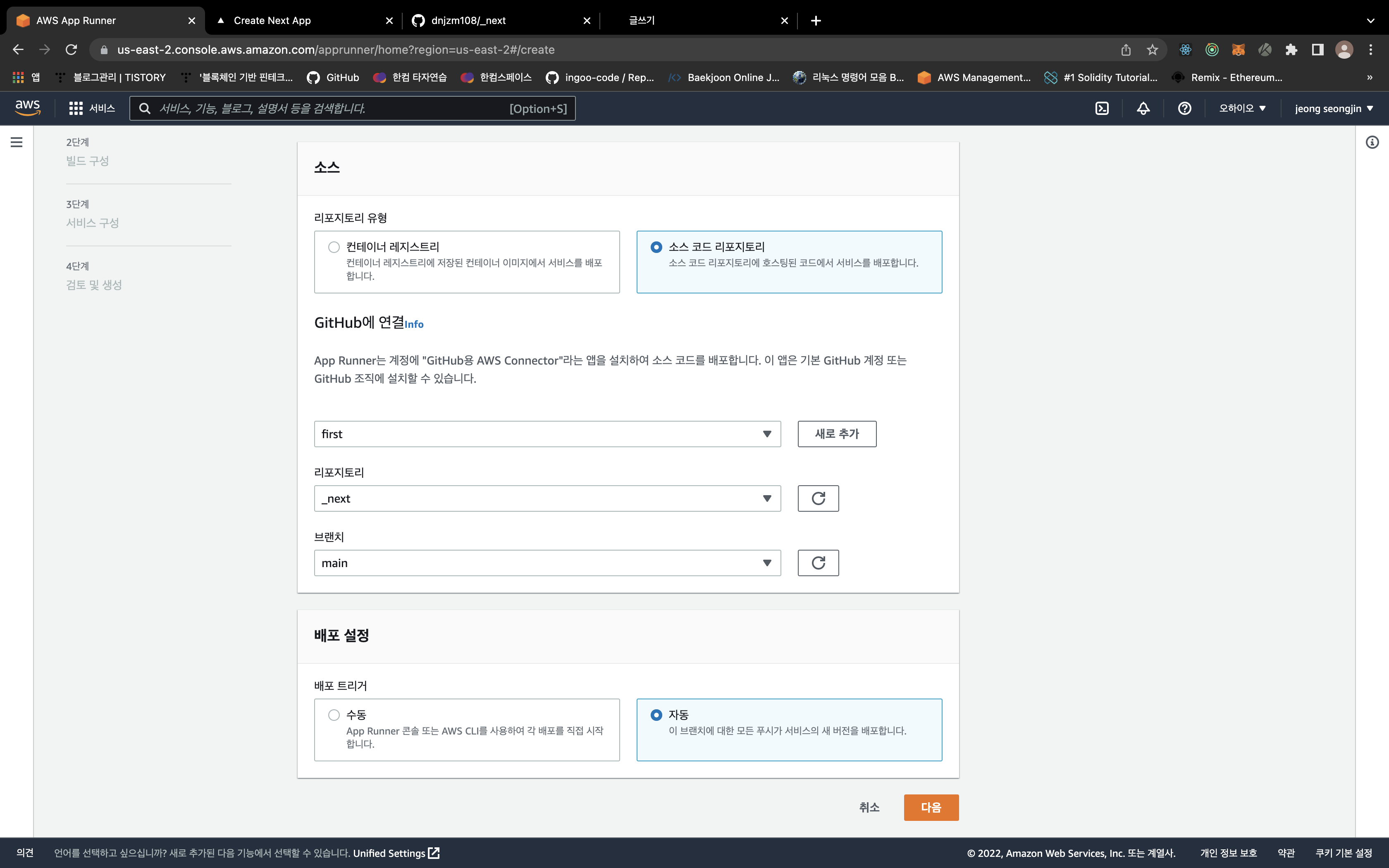 나는 git hub 에 소스 코드를 배포 하고 싶기 때문에 소스 코드 리포지토리를 선택 후 git hub 로그인 후 연결 한다.